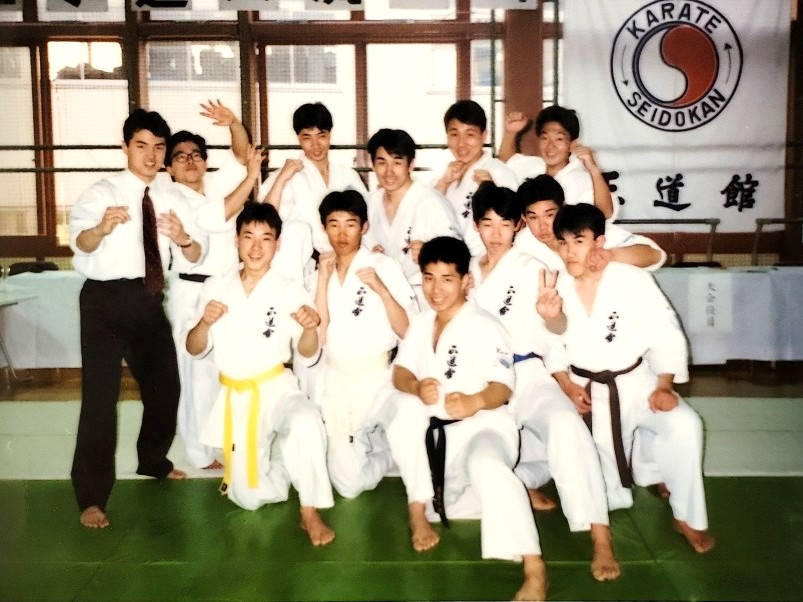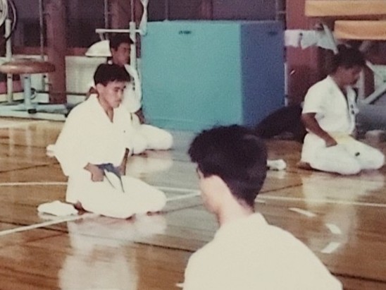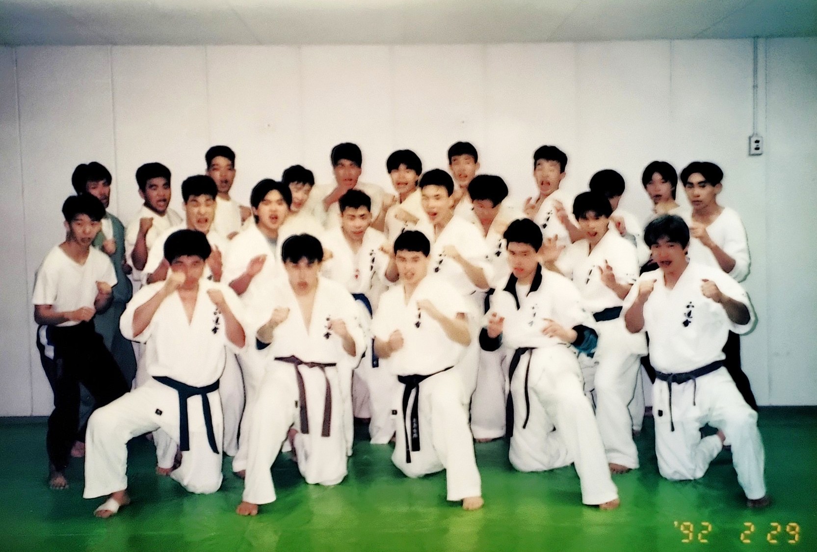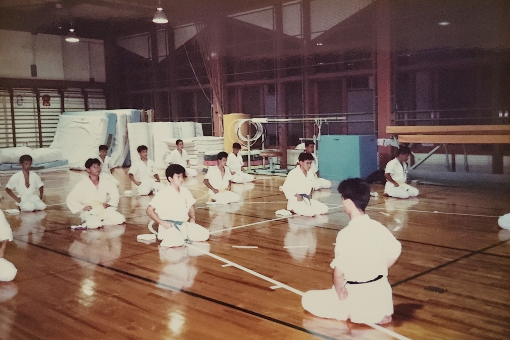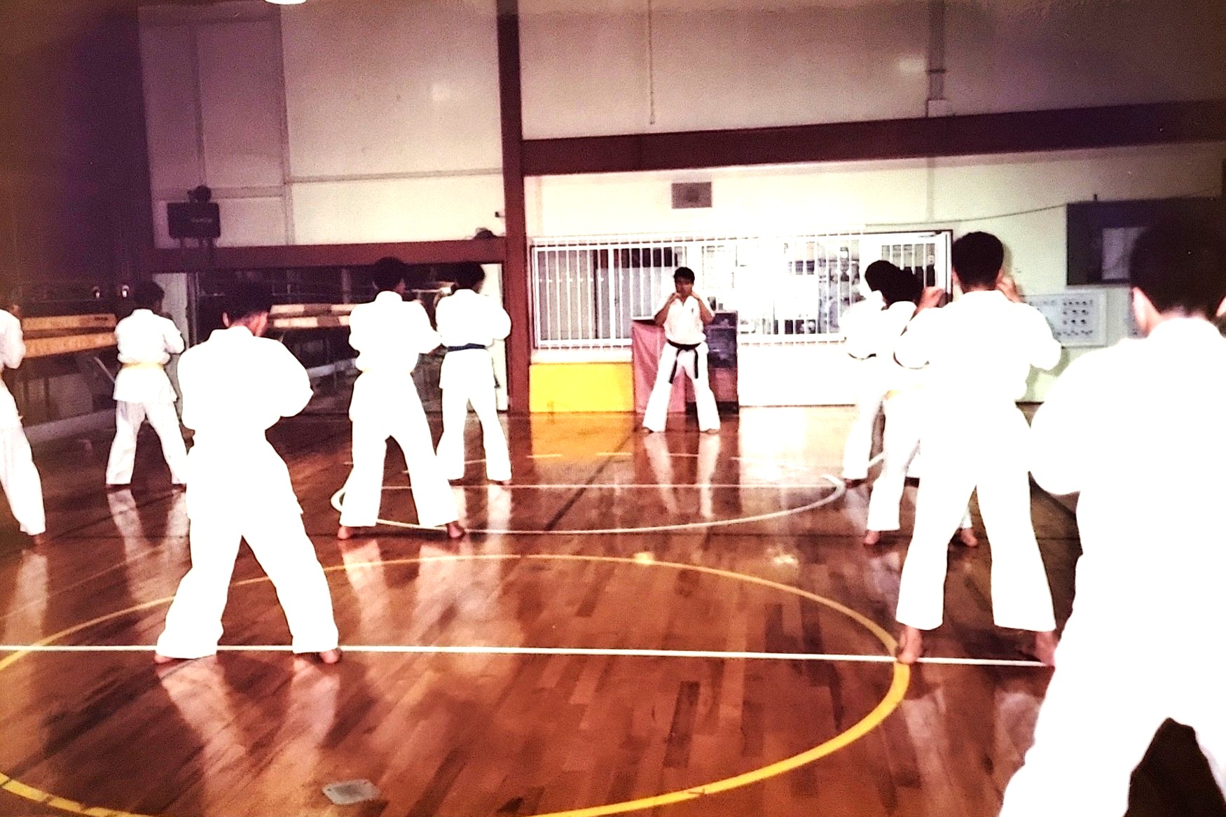 決勝戦で当時本部の内弟子だった鈴木修司(現真正会代表代行)選手と対戦し上段膝蹴りで一本勝ちをおさめ優勝しました!この時鈴木選手は頬か顎を骨折。今でも鈴木さんは当時の思い出話をする時必ずその時の話をされます。鈴木さんも認める強い選手だった事は間違いありません。実はこの日の丁度一週間程前に御座岡先生と霜出君の店に行った時の話をしていたばかりでしたので今回の事は本当に驚きました。霜出君は偶然前を通りかかった時に空手の稽古をしているのが目に入り覗き込んだら私の姿があり驚き直ぐに飛び込んできたらしいです。こんな事ってあるんですね。観ていて燃えてきたのか来ていた生徒さんと軽く手合わせやろうとするので『アカンアカン』といって咄嗟に停めました。今の生徒さんには失礼ですが『殺られる』と一瞬生徒の方が心配になりました。それぐらい当時の弟子達は強かった記憶が残っているのです。私も現役バリバリで一緒に激しい組手をバンバン行ない一番厳しく指導していた時代に付いてきていた弟子達ですからね。今はそこまで出来ないので少し寂しさもありますがこれも時代と割り切っています。膝が悪いと聞いたので難しいとは思いますが、もう少し体重を減らして軽くでもやれそうであればいつでも来て下さいね!当時の写真と思い出を紹介しておきます!