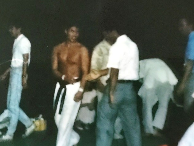 4月の大会では不甲斐ない試合をした私でしたが悔しさよりも何かプレッシャーから解放されたようで逆にやる気が漲ってきました!今までの戦績4位1回、3位3回、準優勝3回と勝ちきれていません。優勝する為には自分には何が足りないのかを良く考えました。思い返すと本番までに決めていたメニューを完全にこなした事が無い事に気づきました。どこかで体調を崩したり疲れている事を理由にノルマをこなさかったり弱めたり等色々と思い当たる節がありました。次の大会はどんな事があっても決めたメニューを全て消化する事、自分の苦手(嫌い)な稽古を優先的に行なう事、身体を鍛え直す事に重点を置く事を決めました。勿論指導も手を抜くこと無く行なっていましたよ!本番までの3ヶ月しっかりと稽古を行ない今までにないくらいの自信を持って本番を迎える事ができました!1988年7月3日大阪府立体育会館第2競技場で開催される『88’正道会館全日本選抜空手道選手権大会』に出場しました。今大会は9月に開催される『第7回全日本空手道選手権大会』に向けての選考会を兼ねた大会となるのですが、今年の全日本大会より導入される新ルール(再延長戦が引き分けで両者に10㎏以上の差がない場合はグローブを着けて顔面有りルールで勝敗を決する)の実験の場という意味合いも兼ねた大会でもありました。正直このルールに合わして特にグローブを着けた稽古は殆ど行なっていませんでした。常に顔面を想定して稽古していましたし自分の中では今大会は従来の空手ルールで優勝したいという気持ちが強かったのでしっかりと普段通りの稽古を行い試合に挑みました!出場選手は16名でしたが全選手有段者で前大会で負けた藤田君や武澤さん石本さんや山内君という同世代の競合選手に混じり、何と第3回全日本大会5位、拳武道全日本優勝の野村卓先輩や全日本6位の宮崎保之先輩がエントリーしていました。この両名の大先輩は私が中学生時に全日本大会で活躍されていたレジェンドです。3月全九州大会で同じくレジェンドの一人東雅美先輩に完敗していましたのでここは何としても両先輩に勝って優勝を決め自分の殻を破りたいと強く思いました。1回戦は赤穂の鵜崎選手と対戦し終了間際に左の中段廻し蹴りで技有りを奪い判定勝ち。2回戦は私が苦手とするタイプの山本稔先輩。前に対戦した時も再延長までもつれる接戦でしたので、もしかしたら顔面までいくかな?と思っていました。案の定従来ルールでは決まらず体重判定の結果10㎏差が無いことからグローブ戦に突入しました。グローブ戦に入っても落ち着いて戦う事は出来ていたと思います。途中何回か出したフックで少し手応えを感じました。終了間際に出したフックはそんなに手応えはありませんでしたがタイミングが良かったのか山本先輩がダウンし技有りを奪え判定勝ちできました。そしていよいよ準決勝戦で『稀代のワザ師 野村卓先輩』との対戦となりました。野村先輩は華麗な足技が得意なイメージがありましたが以前本部の組手稽古でレバー打ちで効かされた事があったのでボディへの攻撃も警戒していました。又普段から厳しい先輩でよく怒られたりもしていましたので気持ちで負けないよう怯まないよう自分に言い聞かせました。軽量ですが多彩な技で攻めてこられ時折上段廻し蹴りが顔をかすめます。時折出してくる突きも重いです。延長戦では飛び後ろ蹴りや後ろ回しの大技も使ってこられました。何とか凌いで再延長戦へ突入。両者掴みが多いとの事で上衣を脱がされます。逆にこれで私も突きがよく出るようになりました。中盤から右の下段廻し蹴りもいい感じで入るようになり終盤先輩に少し疲れがみえたところを責め立て判定勝ちを収める事ができました。そして決勝戦は逆ブロック2回戦で武澤さん準決勝戦で藤田君という同世代の強豪たちを破り勝ち上がってきたのはもう一人のレジェンド『静かなる武人 宮崎保之先輩』でした。仲間たちが次々に敗れるのを目の当たりにしてここは絶対に俺が勝手世代交代をするぞ!と強い気持ちをもって決勝戦に臨みました。宮崎先輩は手足が大きく骨が太く一発一発がとても重く強かったです。何とか耐えながら先輩のパワーにもっていかれないよう技と手数、気合で負けないよう対抗しました。延長戦の後半に野村先輩との準決勝でよく出た右の下段が出るようになりましたが宮崎先輩の手数も落ちません。延長戦も引き分けとなり再延長戦へ。今大会かなり延長戦を戦ってますが九州大会の時ようなしんどさはありません。むしろ気持ちが充実していて闘争心が落ちることはありません。教え子の子供たちの声援もとても良く聞こえ冷静に戦えました。『ここまできたら優勝するぞ!子供達の為にも絶対に負けないぞ!』と自分に言い聞かせながら戦いました。再延長戦に入っても宮崎先輩の動きは落ちませんが自分も絶対に引けません。後半は宮崎先輩を何回か場外に押し出す事もあり正直『勝てた!