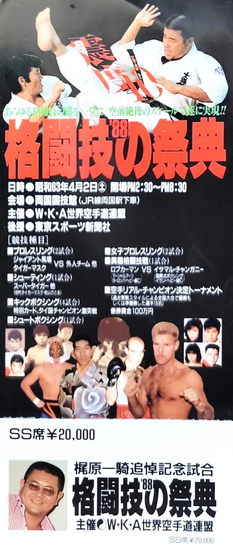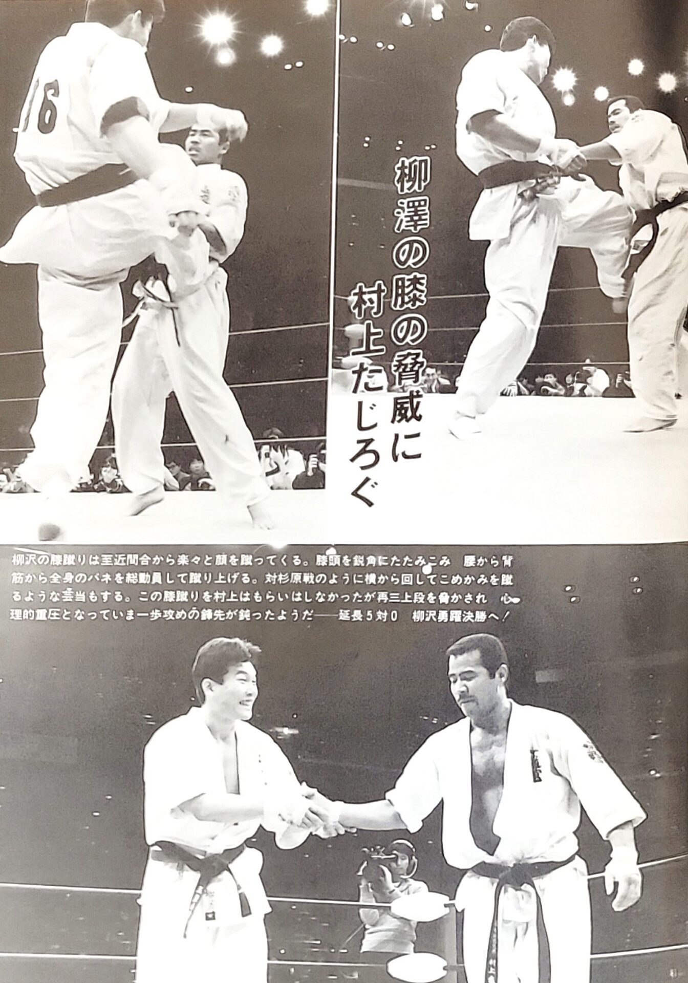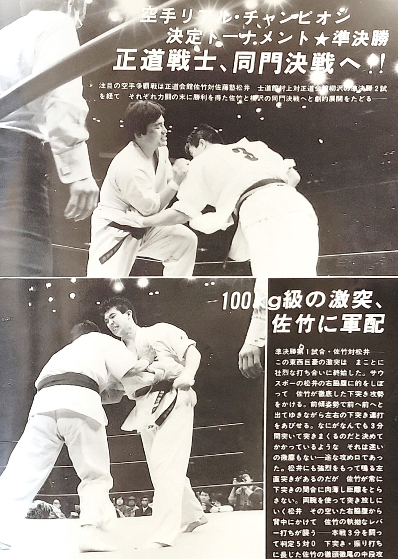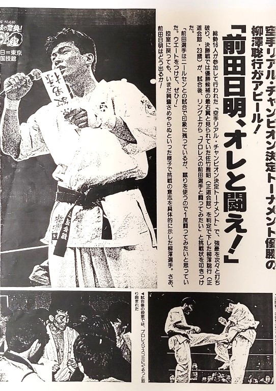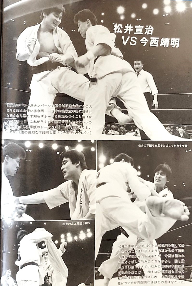 正道会館九州空手道選手権大会から約2週間後の1988年4月2日両国国技館で梶原一騎先生の追悼記念試合として『格闘技の祭典』が開催されました。この大会ではプロレス、女子プロレス、キックボクシング、シュートボクシング、そして初代タイガーマスクの佐山聡さんが創ったシューティング等色々な格闘技の選手が試合やデモンストレーションを行なう等夢のような大会でした。その中の目玉として実戦空手主要団体の全日本大会優勝者、準優勝者にのみ出場資格が与えられた『空手リアルチャンピオン決定トーナメント』が開催されました。正道会館からは佐竹雅昭先輩、川地雅樹先輩、今西靖明先輩、柳澤聡行さんの4名が出場しました。各流派の代表選手が集い16名でトーナメントを争うのですが本当に1回戦から決勝戦なみの好カードが目白押しでした。私も先輩達のセコンドで間近で試合を観ることが出来とても興奮した事を今でも鮮明に憶えています。最終的に決勝戦まで駒を進めたのは佐竹先輩と柳澤さんで正道会館同門対決となりました。大方の予想は佐竹先輩の勝利だったと思います。しかし柳澤さんは気持ちで全く引くこと無く試合は再延長戦までもつれ込みました。再延長戦はやや佐竹先輩に分があるように思いましたが佐竹先輩がダメ押しで攻め込もうとした所を柳澤さんの得意技上段膝蹴りが顎に決まり一瞬佐竹先輩の動きが止まったように思いました。すかさず攻め立て追撃した所で太鼓が鳴り終了。判定の結果柳澤選手の逆転勝ちとなり会場は大歓声に包まれました!この時の柳澤さんは常に気合いを出し続けながら戦っていて本当にカッコ良く私も刺激を受けました。それから3週間後の4月22日に大阪府立体育会館柔道場で第11回全日本新人空手道選手権大会が開催され私もAクラスにエントリーしていました。新人戦とはいってもAクラスには全日本入賞実績もある松本栄治君や田前純三さん武澤伸光さん藤田実君など少人数ながら強豪選手も出場しておりました。実はこの大会の映像も写真も残っていなくてあまり記憶にありません。憶えているのはAクラスの組み合わせは当日抽選で決定する方式で私は初戦で北海道支部の選手と戦い勝利し、準決勝戦では士道館全日本準決勝で戦った藤田実選手と再び戦い敗退した事です。3位に入賞しているのは手元にある表彰状で分かったくらいで入賞していた記憶も3位決定戦を誰と戦ったのかも全く憶えておりません。憶えているのは藤田君との試合は自分から途中で投げ出したような一番やったらダメで自分自身が一番嫌いな試合内容で負け、試合後に応援してくれていた正道会館後援会の社長さんに『中川何をやってんや』と怒られた事です。格闘技の祭典での柳澤さんの戦いを観て刺激を受けた私でしたが、選手としてデビューしてからの4年間で11回大会に出場し4位1回、3位2回、準優勝3回と善戦するも一度も優勝する事が出来ず、少し精神的にしんどくなってきていたように思います。試合も接戦が多かったので一度楽になりたいという気持ちがこの試合で出てしまったのかもしれません…。