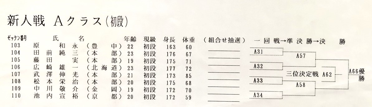 後に全日本王者となる後川聡之君や全日本で活躍する山内周二君、古山久則君の